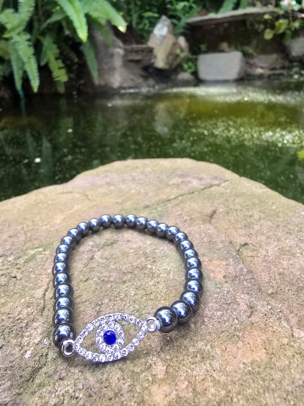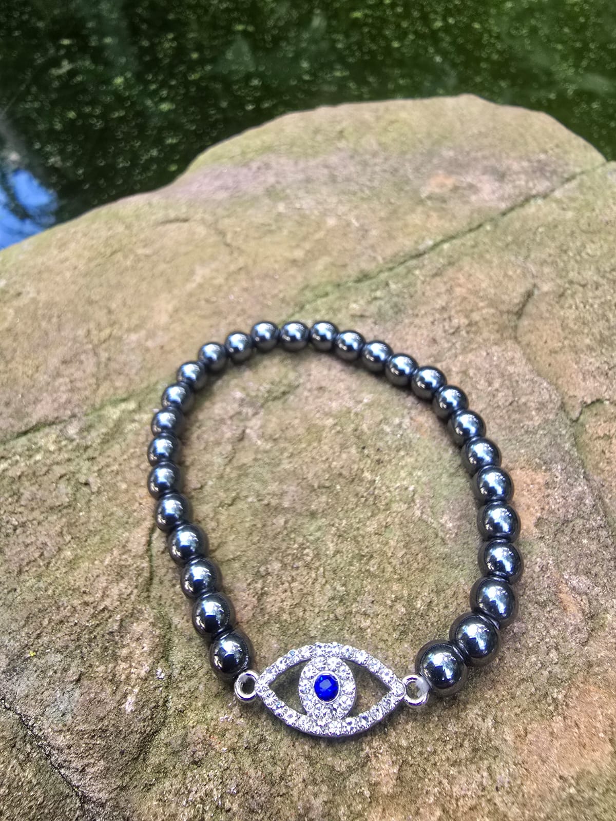 Hematite bracelet with evil eye