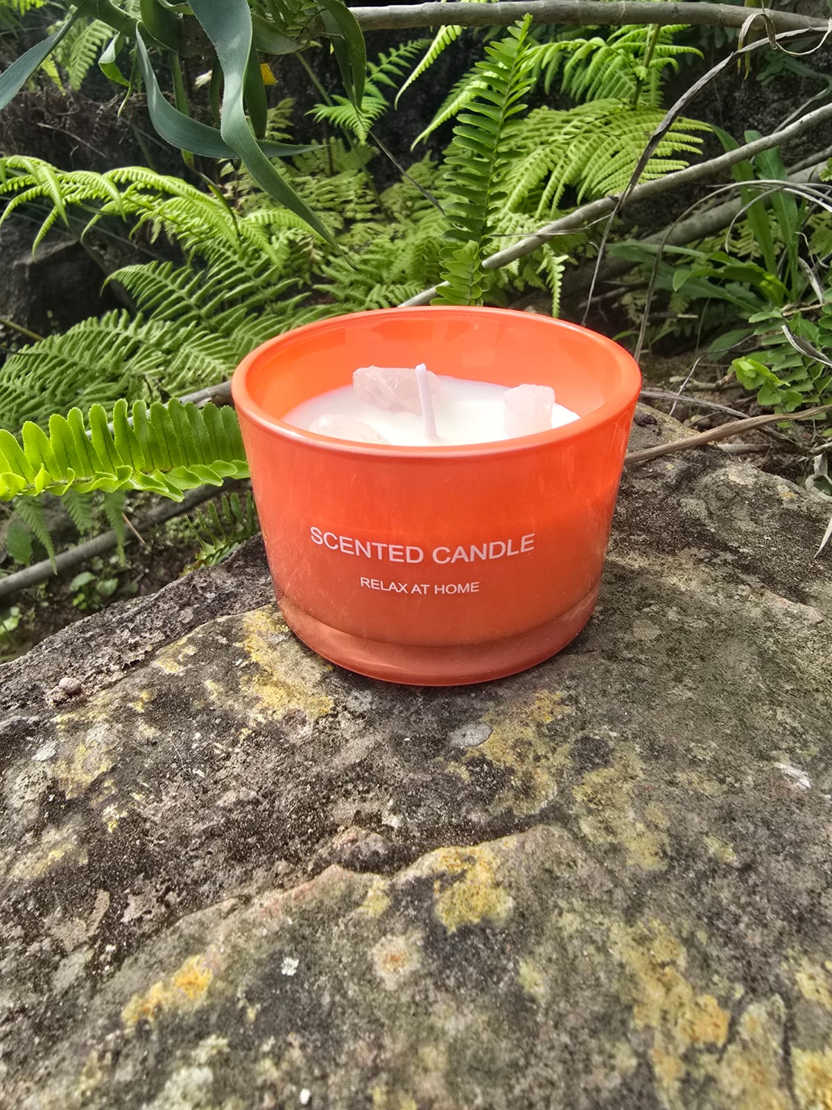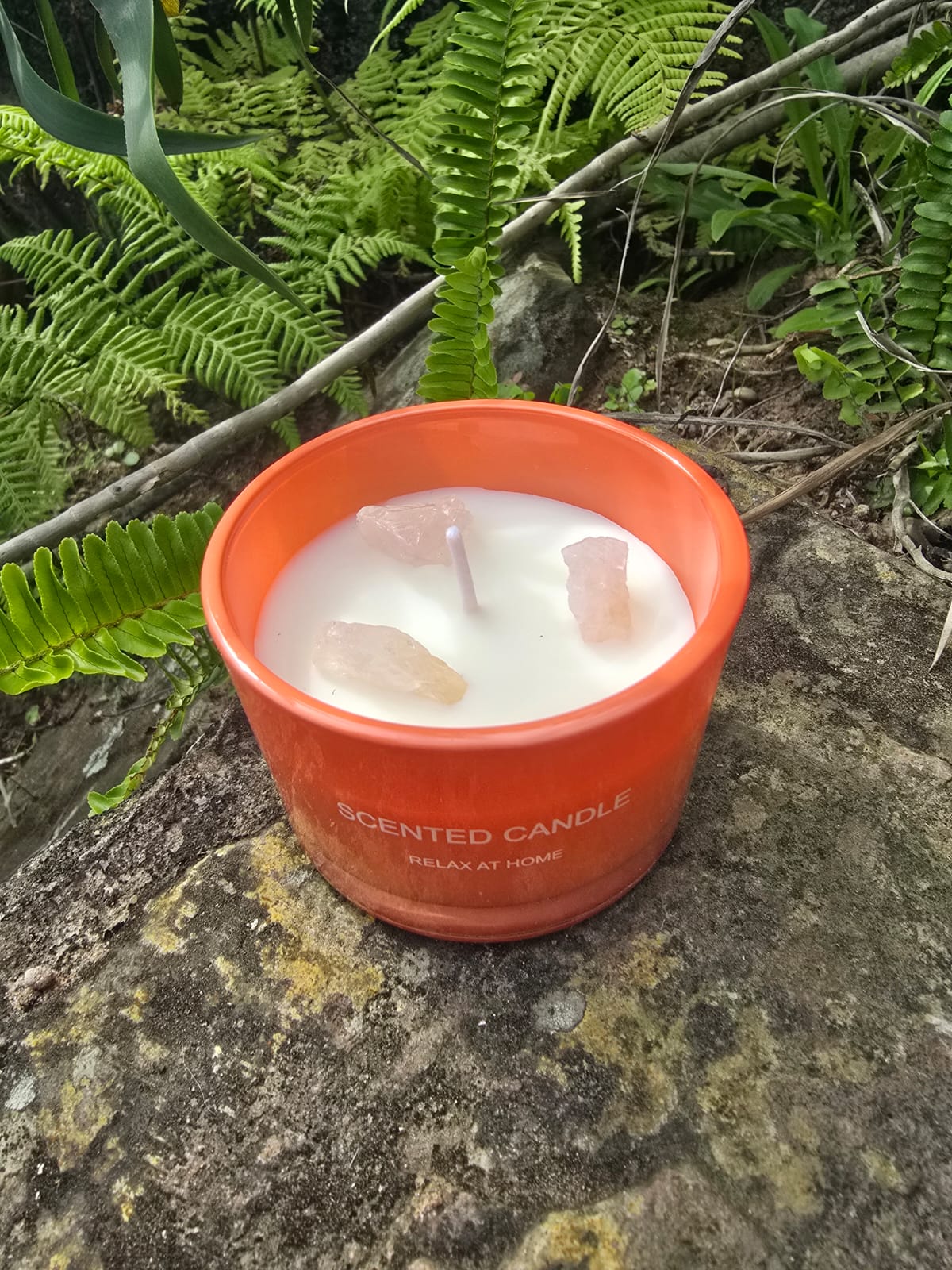 A candle for the heart and spirit. Each Rose Quartz candle is a ritual of self-love, reminding you to slow down, breathe, and nurture your emotional well-being. Let the warm glow and crystal magic guide you back to your worth.