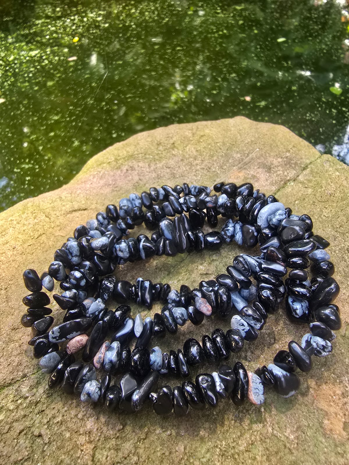 Snowflake Obsidian Chip Bracelet